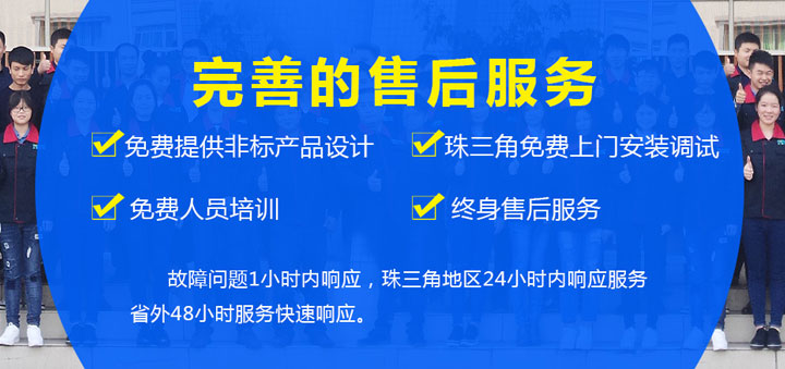 專業技術人員上門交機培訓,指導機器操作,并培訓機器后續維護保養,提高機器使用壽命,一年免費保修維護,專業的售后團隊,保證故障問題1小時內響應,珠三角地區24小時內上門,廣東省外48小時內上門。